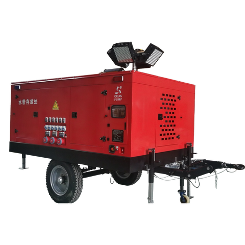 Nước thải bơm thoát nước bơm với hệ thống ánh sáng điện thoại di động thế hệ Trailer khẩn cấp cho phòng chống lũ bơm thủy lợi